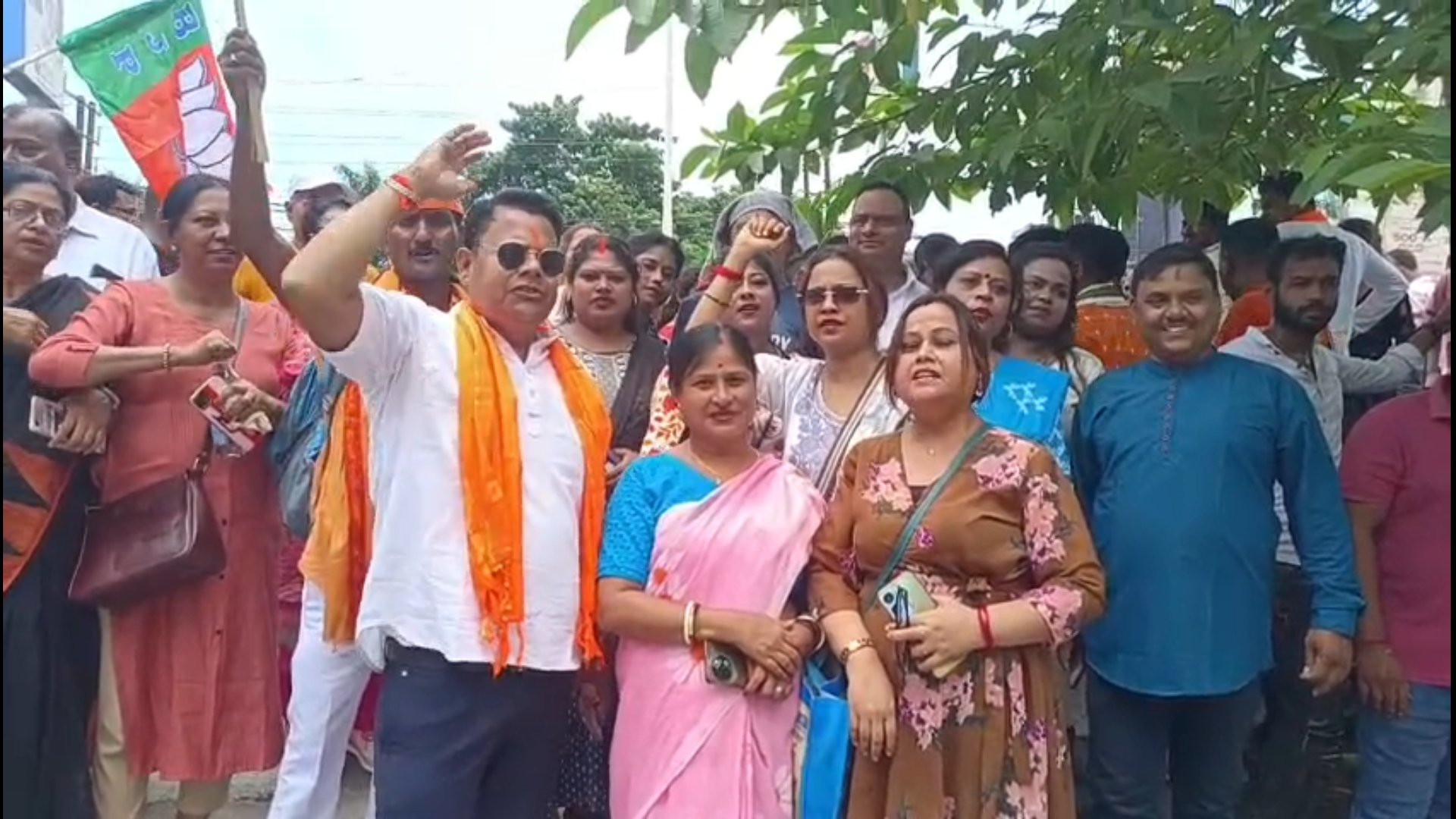শিলিগুড়ি, ২১ জুলাই : তৃণমূল কংগ্রেসের শহীদ দিবসের পাল্টা কর্মসূচি হিসেবে বিজেপির যুব মোর্চার আয়োজিত উত্তরকন্যা অভিযান ঘিরে সোমবার সকাল থেকেই উত্তপ্ত হয়ে ওঠে শিলিগুড়ির রাজপথ। তিনবাত্তি মোড়ে জড়ো হয়ে বিজেপি কর্মীরা একের পর এক ‘তৃণমূল হঠাও, বাংলা বাঁচাও’ স্লোগানে মুখর করে তোলেন গোটা এলাকা। শঙ্খ-উলুধ্বনি, দলীয় পতাকা ও ব্যানারে কার্যত উৎসবমুখর প্রতিবাদের রূপ নেয় এই জমায়েত।