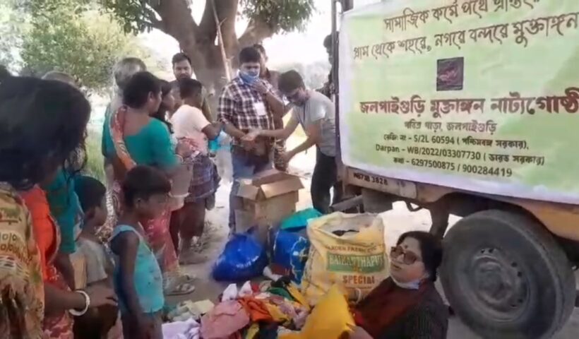 Humanitarian touch for flood victims — Jalpaiguri Muktangan theatre group in the field with relief