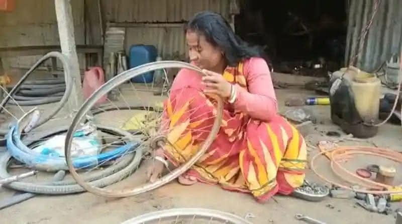 The struggle of life painted with a hammer and a range; Anjali Devi of Dakshin Dinajpur has taken charge of the family