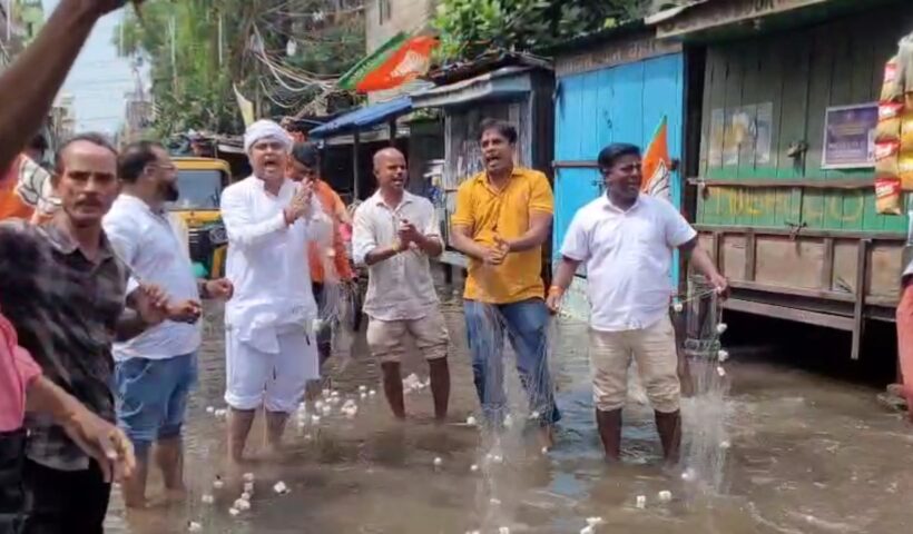 View More টিটাগড়ে জলমগ্ন শহরে জাল ফেলে প্রতীকী প্রতিবাদ; নেতৃত্বে কৌস্তভ বাগচীরাতভর বৃষ্টিতে জলমগ্ন কলকাতা; জনজীবন কার্যত থমকে গেল
