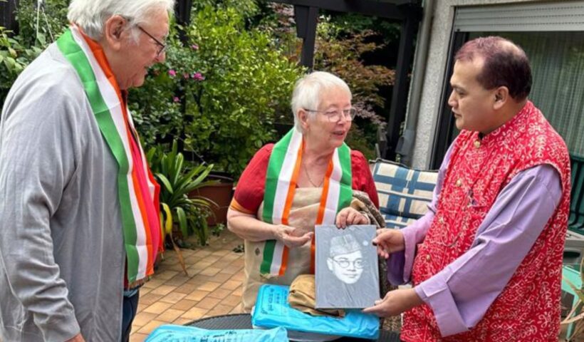 Lawyer Joydeep Mukherjee releases book ‘Netaji and Emily Schenkel’ in Germany with Netaji’s daughter
