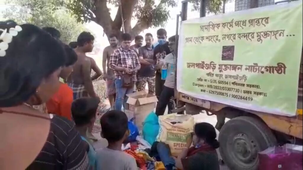 জলপাইগুড়ি: প্রবল বৃষ্টিতে সৃষ্ট ভয়াবহ বন্যা যখন উত্তরবঙ্গের বহু গ্রামে অসহায়তা ছড়িয়ে দিয়েছে, তখন মানবিকতার বার্তা নিয়ে এগিয়ে এল জলপাইগুড়ির সংস্কৃতি জগতের এক পরিচিত নাম—মুক্তাঙ্গন নাট্যগোষ্ঠী। বৃহস্পতিবার সংগঠনের সদস্যরা পৌঁছে যান ময়নাগুড়ি ব্লকের টেকাটুলি, চারেরবাড়ি, বেতগারা ও ঢেলারবাড়ি গ্রামে।
