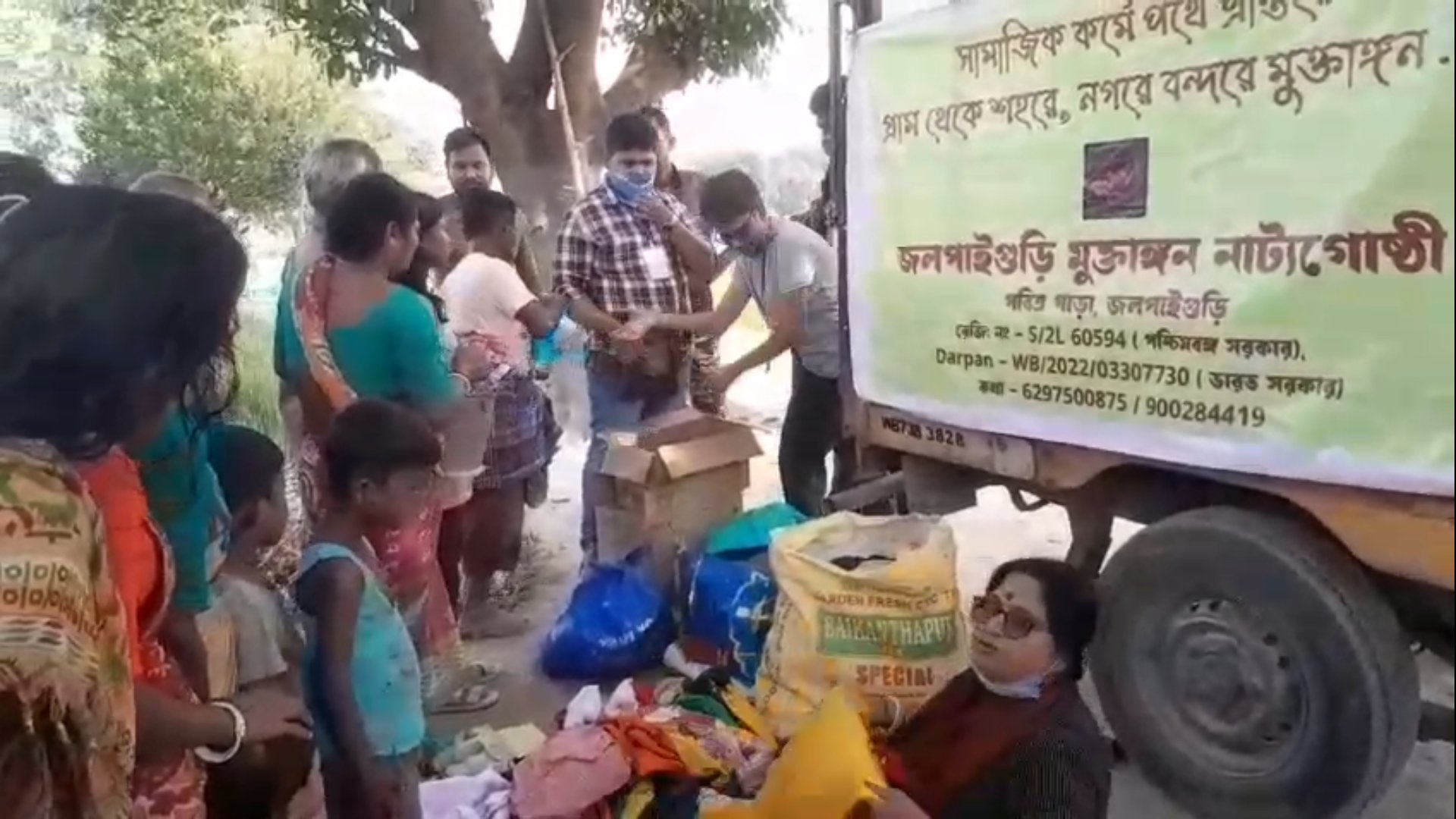 জলপাইগুড়ি: প্রবল বৃষ্টিতে সৃষ্ট ভয়াবহ বন্যা যখন উত্তরবঙ্গের বহু গ্রামে অসহায়তা ছড়িয়ে দিয়েছে, তখন মানবিকতার বার্তা নিয়ে এগিয়ে এল জলপাইগুড়ির সংস্কৃতি জগতের এক পরিচিত নাম—মুক্তাঙ্গন নাট্যগোষ্ঠী। বৃহস্পতিবার সংগঠনের সদস্যরা পৌঁছে যান ময়নাগুড়ি ব্লকের টেকাটুলি, চারেরবাড়ি, বেতগারা ও ঢেলারবাড়ি গ্রামে।